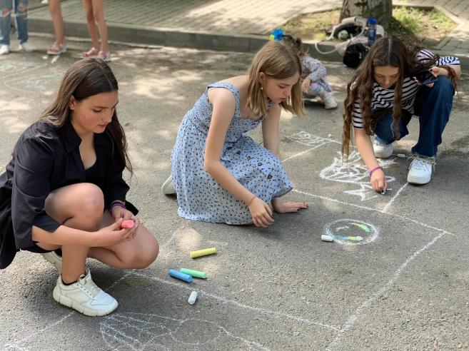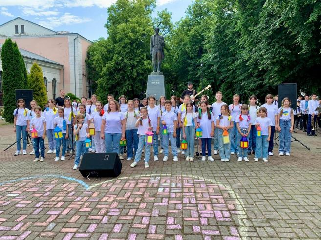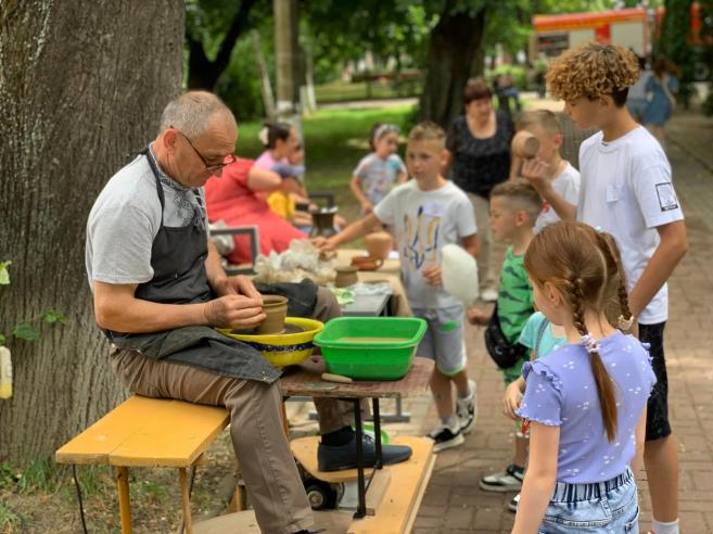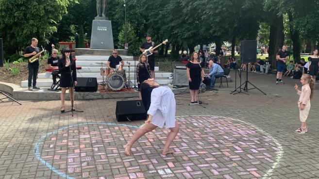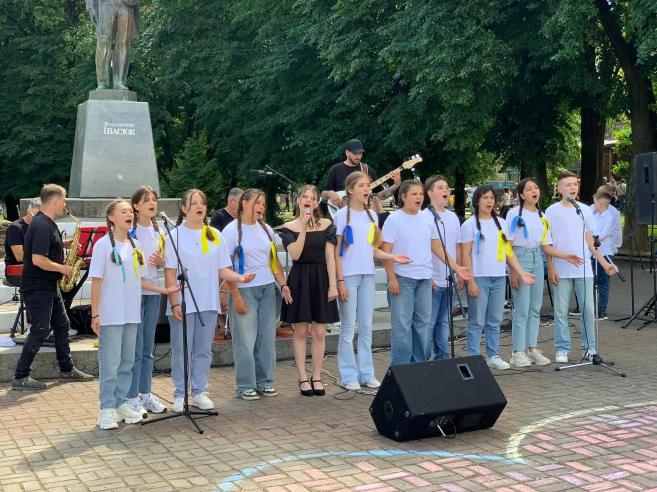 ϳñëÿ çàâåðøåííÿ óðî÷èñòî¿ ÷àñòèíè ñâÿòà ñâÿòêîâ³ çàõîäè äëÿ ä³òåé ïðîäîâæèëèñÿ êîíêóðñîì äèòÿ÷îãî ìàëþíêó íà àñôàëüò³ «Ñâ³ò áåç â³éíè», à íà ñöåí³ ðîçïî÷àâñÿ áëàãîä³éíèé êîíöåðò íàðîäíîãî àìàòîðñüêîãî âîêàëüíî-³íñòðóìåíòàëüíîãî ãóðòó «Ôîðøëàã» ñï³ëüíî ³ç ó÷íÿìè òà âèêëàäà÷àìè â³ää³ëó «ñîëüíîãî ñï³âó» ʳöìàíñüêî¿ ìóçè÷íî¿ øêîëè ³ì.Â.²âàñþêà.