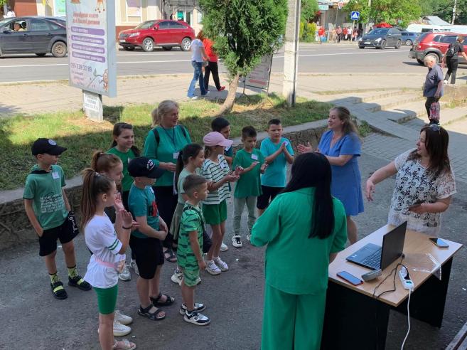 Юні учасники інтерактивного квесту «Розумники України», що сьогодні проводився з нагоди Дня захисту дітей, завзято проходили всі завдання, які для них приготували організатори на станціях.