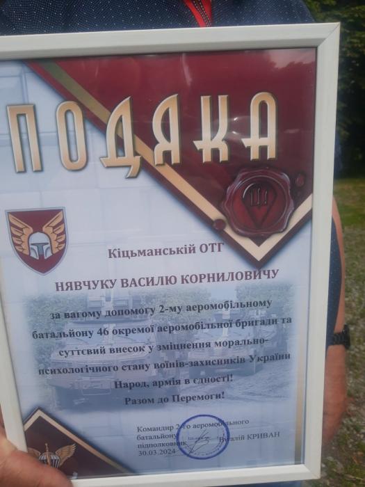 Цього разу таку подяку від командування 2-го аеромобільного батальйону привіз житель с.Шипинці, військовослужбовець Баланецький Юрій, який приїхав у відпустку до рідної домівки.