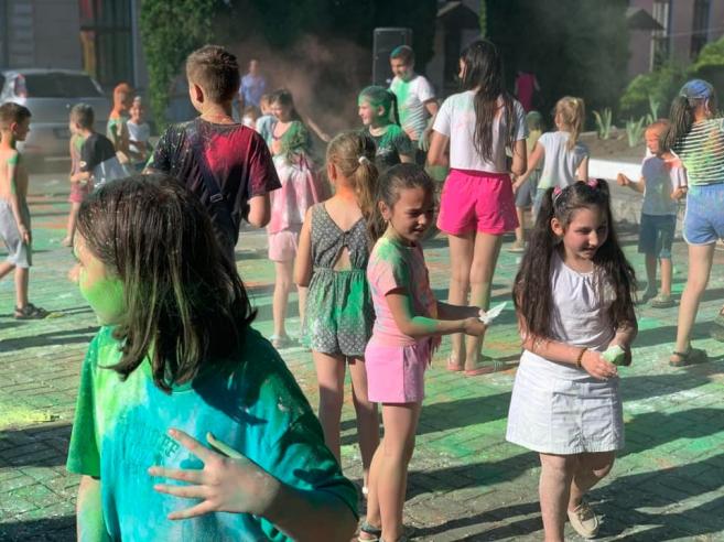 Наприкінці свята всіх діток було запрошено на патріотичне свято фарб «Яскраве дитинство», де вони грали у ритмічні ігри, весело та яскраво провели свій час та зіткнулися у запеклій боротьбі, кидаючи один в одного кольорові фарби, вивільнивши емоції.