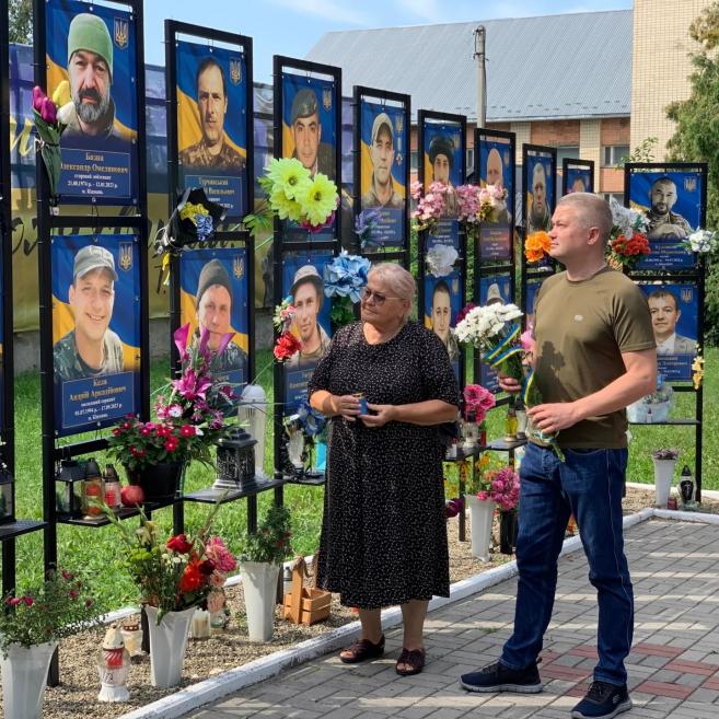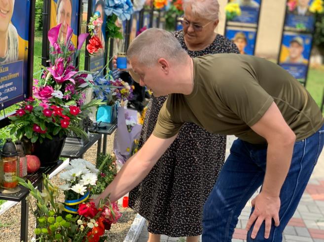 В цей скорботний день до Алеї Слави прийшли міський голова Кіцманської територіальної громади Сергій Булега та голова Кіцманського волонтерського центру «Допомога українській армії» Ганна Юрбаш, щоб вшанувати пам’ять та помолитися за Його душу.🙏🏼🕯️