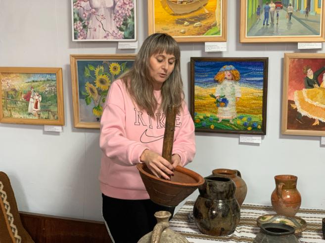 Старший співробітник історико-краєзнавчого музею Оксана Савчук розповіла присутнім про вироби, що були представлені на виставці, про їхнє призначення, автентичність, методи виготовлення, цінність та актуальність на сьогодні.