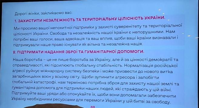 Захід спрямований на обговорення досягнень і викликів жіночого руху, звернення до жінок європейських країн про підтримку України, а також підтримку активної ролі жінок у громадському та економічному житті.