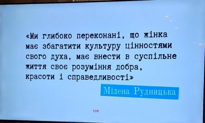 У виступі було наголошено на гендерну асиметрію щодо представленості жінок на керівних посадах та у прийнятті рішень, відсутності фахових кадрів для підвищення рівня державності. Особливу увагу звернула на роль жінок, які захищають територіальну цілісність України, здійснюють волонтерську діяльність, проводять роботу з внутрішньо переміщеними особами, надають психологічний супровід та підтримку військовим, членам неблагополучних сімей, тощо; окреслила фахову потребу щодо майбутньої роботи з ветеранами війни.