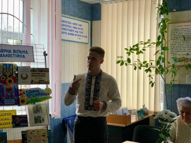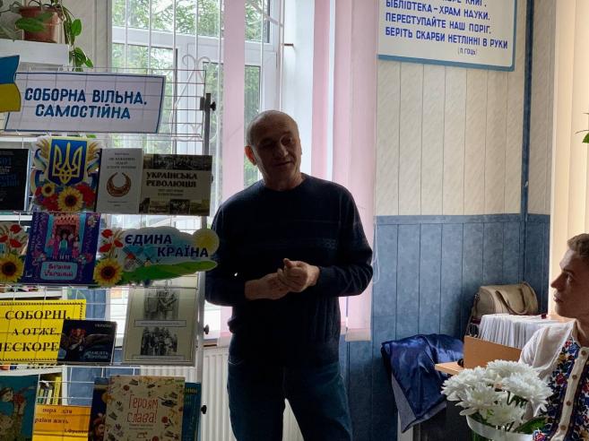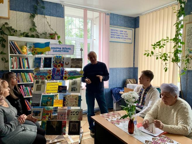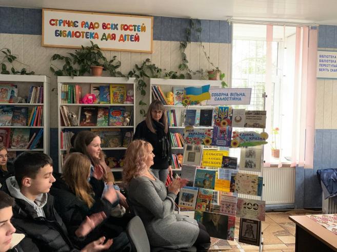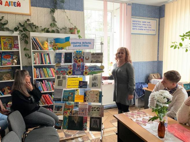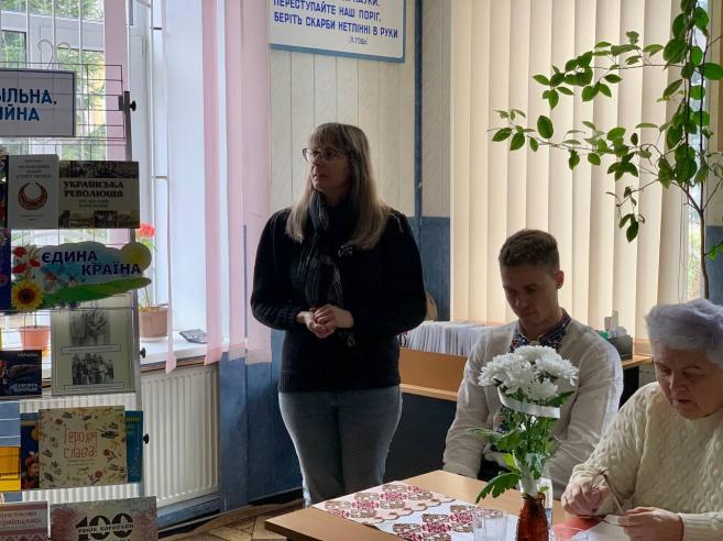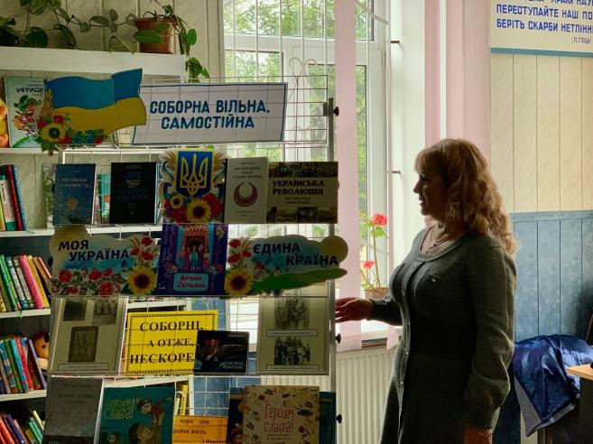 На заході також було представлено книжкову виставку “Соборна, вільна, самостійна”, яку презентувала Людмила Корзун — бібліотекар сектору обслуговування дорослих користувачів.