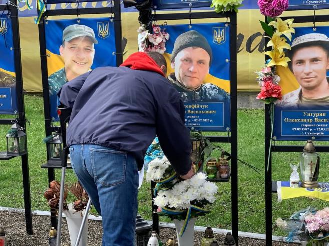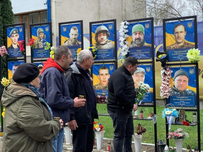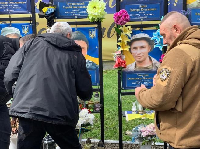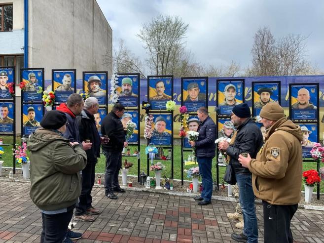 Ç òðàóðíèìè êâ³òàìè òà ñâ³÷êîþ ïàì'ÿò³ íà Àëåþ Ñëàâè ïðèéøëî êåð³âíèöòâî ãðîìàäè, âîëîíòåðè, â³éñüêîâîñëóæáîâö³, ùîá âøàíóâàòè ïàì'ÿòü ïîëåãëîãî âî¿íà.