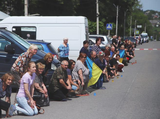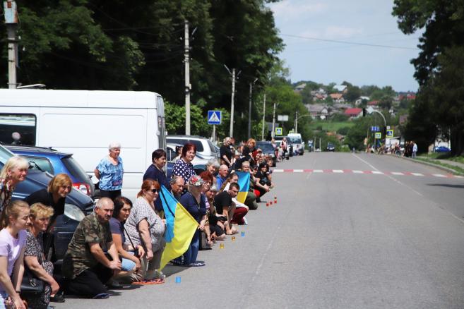 Жителі міста Кіцмань стали навколішки, вшанувавши пам’ять полеглого Героя живим коридором шани.
