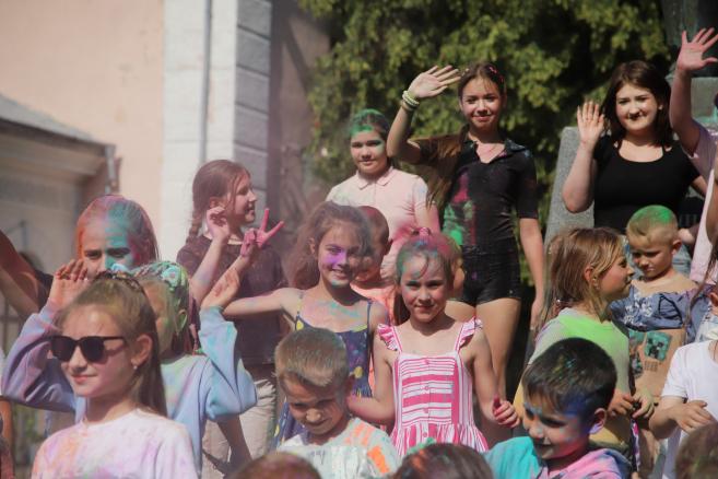 🌈 А далі — справжній батл фарб, що перетворив площу на яскраву палітру емоцій! Барви літа, сміх і щасливі обличчя дітей — це те, заради чого варто творити подібні події.