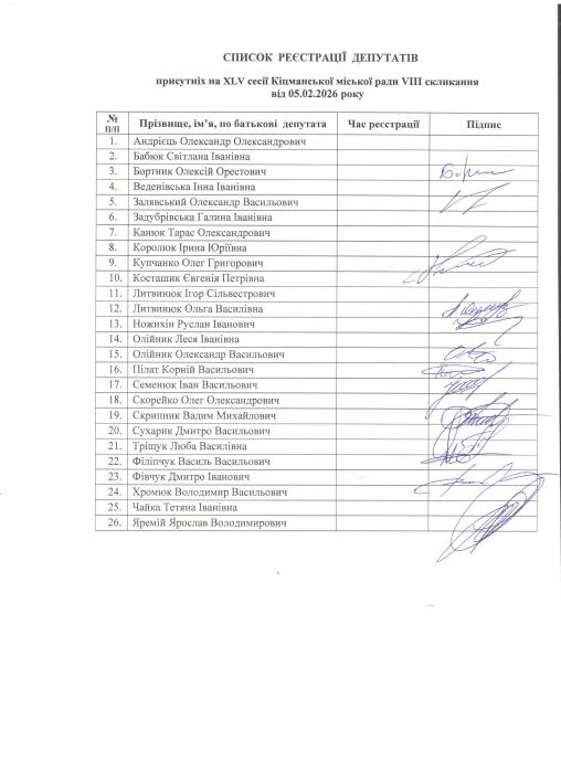 Ãîëîâíà > Ïóáë³÷íà ²íôîðìàö³ÿ > гøåííÿ Ðàäè > XLV ñåñ³ÿ ʳöìàíñüêî¿ ì³ñüêî¿ ðàäè VIII ñêëèêàííÿ â³ä 05.02.2026 ðîêó.