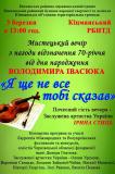 У фойє районного будинку народної творчості та дозвілля для відвідувачів розгорнулися виставки фотографій та книг, присвячені непересічній особистості Володі. А далі розпочалася яскрава концертна програма "Я ще не все тобі сказав", під час якої спогадами про талановитого брата поділилася його сестра Оксана Івасюк–Павлюк, яка також подякувала кіцманчанам за те, що бережуть пам’ять про Володю: