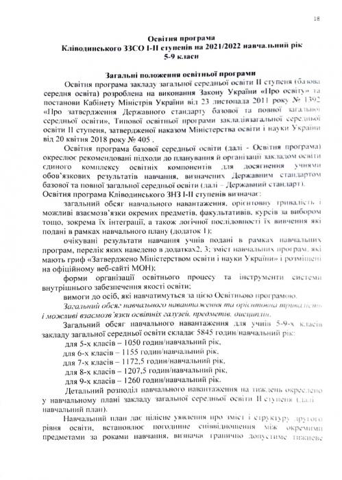 Êë³âîäèíñüêà ã³ìíàç³ÿ ʳöìàíñüêî¿ ì³ñüêî¿ ðàäè > Îñâ³òíÿ ïðîãðàìà