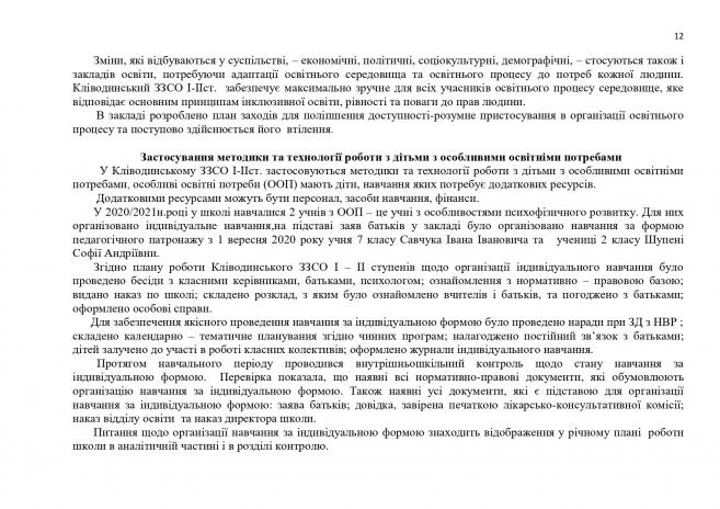 Кліводинська гімназія Кіцманської міської ради > Річний звіт про діяльність закладу освіти 2021