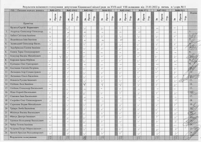 Ðåçóëüòàòè ïî³ìåííîãî ãîëîñóâàííÿ äåïóòàòàìè ʳöìàíñüêî¿ ì³ñüêî¿ ðàäè íà XV²² ñåñ³¿ ʳöìàíñüêî¿ ì³ñüêî¿ ðàäè VIII ñêëèêàííÿ â³ä 25.03.2022 ðîêó