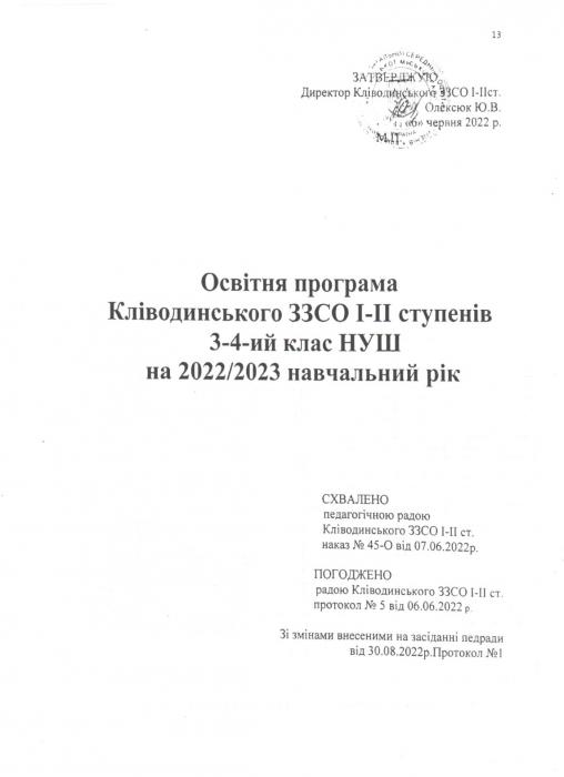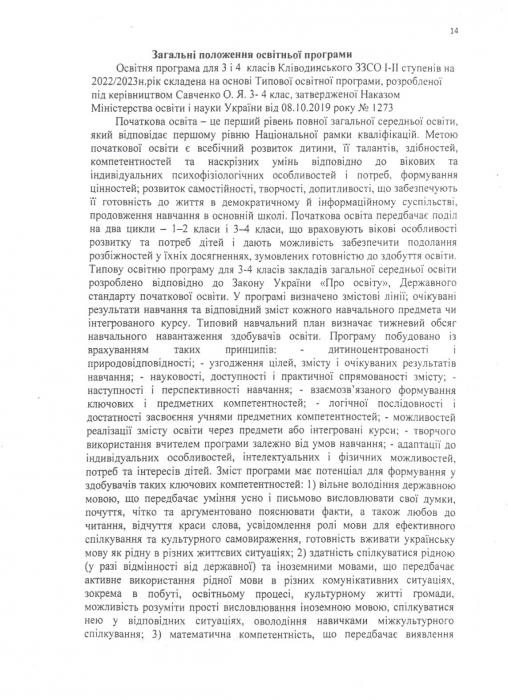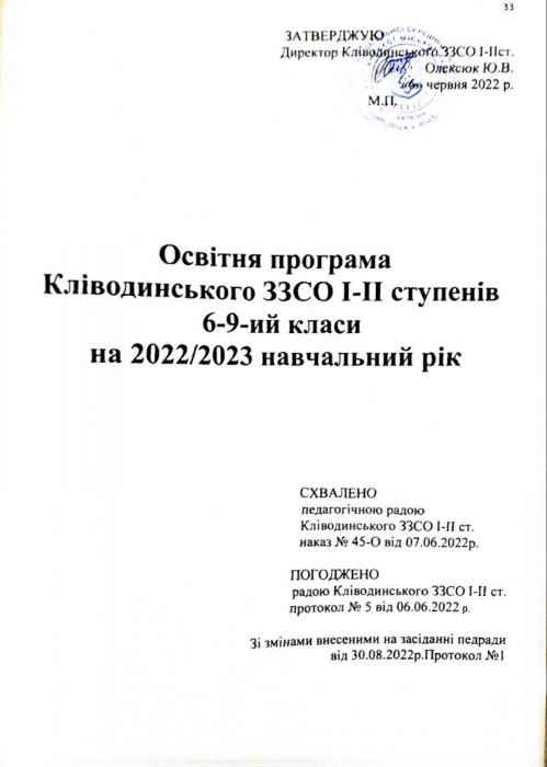 Êë³âîäèíñüêà ã³ìíàç³ÿ ʳöìàíñüêî¿ ì³ñüêî¿ ðàäè > Îñâ³òíÿ ïðîãðàìà 2022-2023