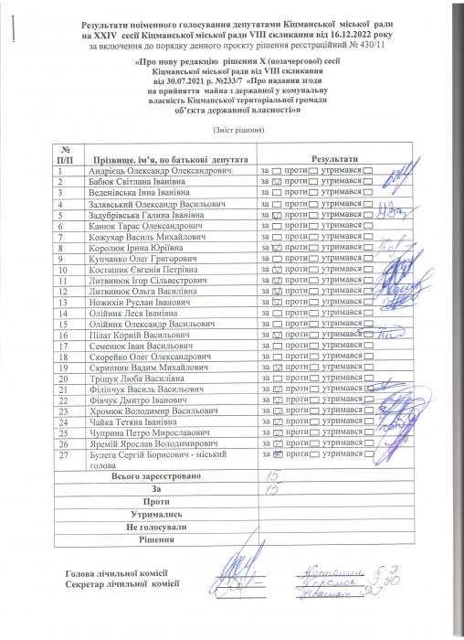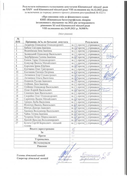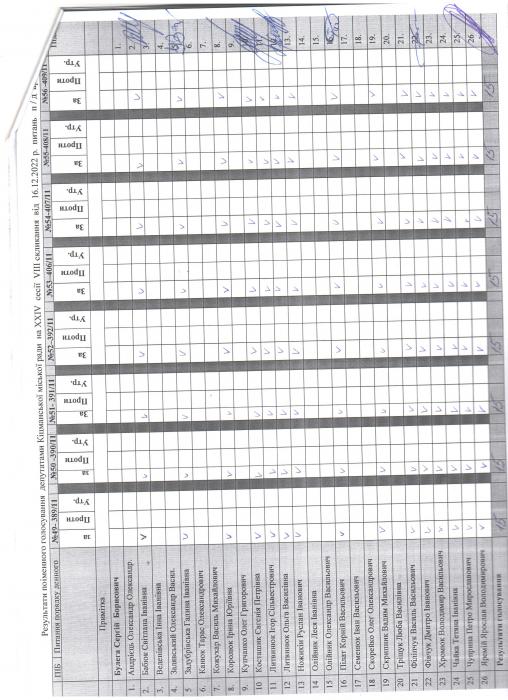 XXIV ñåñ³ÿ ʳöìàíñüêî¿ ì³ñüêî¿ ðàäè VIII ñêëèêàííÿ â³ä 16.12.2022 ðîêó > Ðåçóëüòàòè ïî³ìåííîãî ãîëîñóâàííÿ äåïóòàòàìè ʳöìàíñüêî¿ ì³ñüêî¿ ðàäè íà Õ²V ñåñ³¿ ʳöìàíñüêî¿ ì³ñüêî¿ ðàäè VIII ñêëèêàííÿ â³ä 16.12.2021 ðîêó