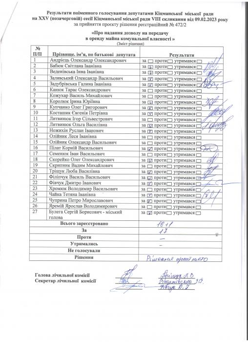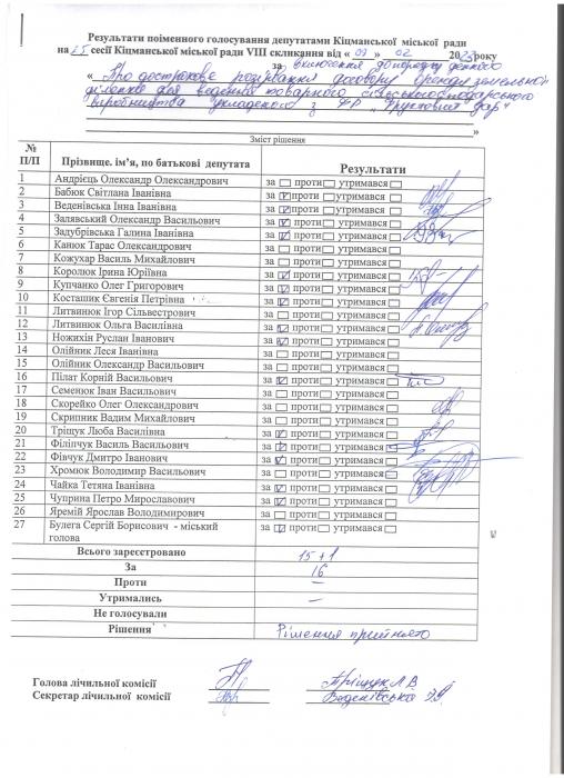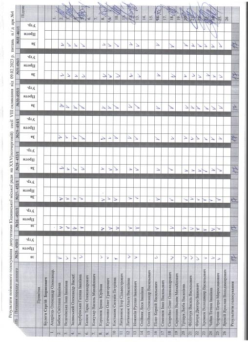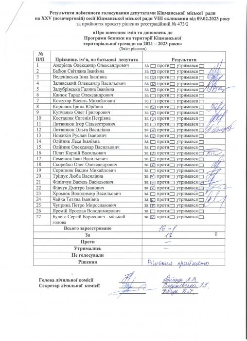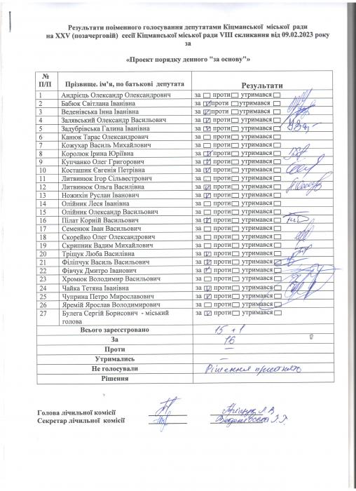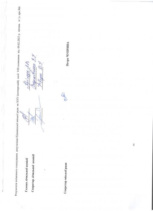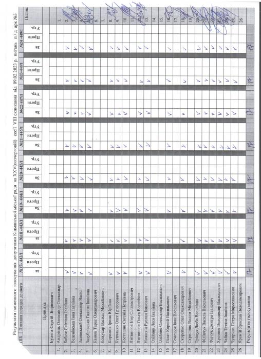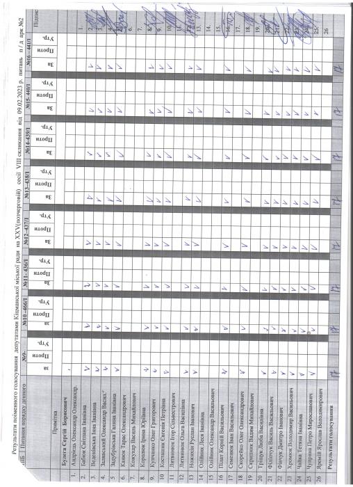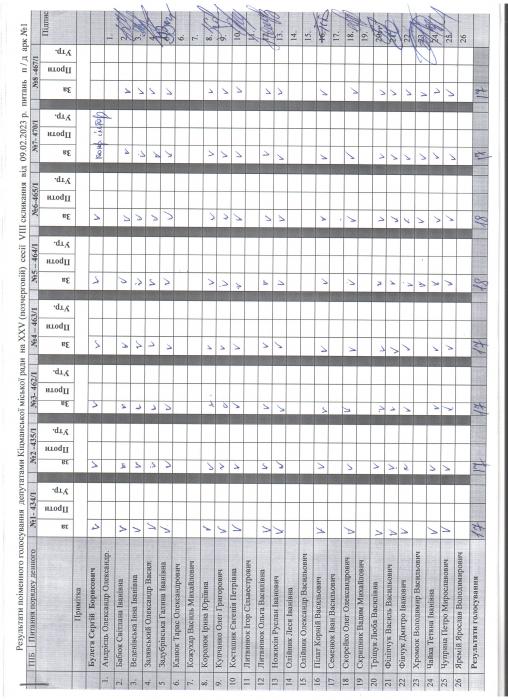 Ðåçóëüòàòè ïî³ìåííîãî ãîëîñóâàííÿ íà XXV (ïîçà÷åðãîâ³é) ñåñ³¿ ʳöìàíñüêî¿ ì³ñüêî¿ ðàäè VIII ñêëèêàííÿ â³ä 09.02.2023 ðîêó