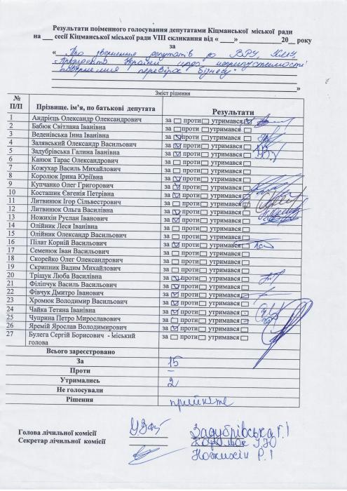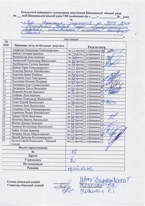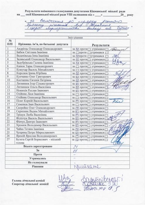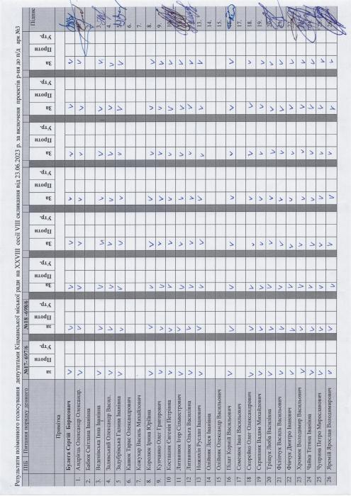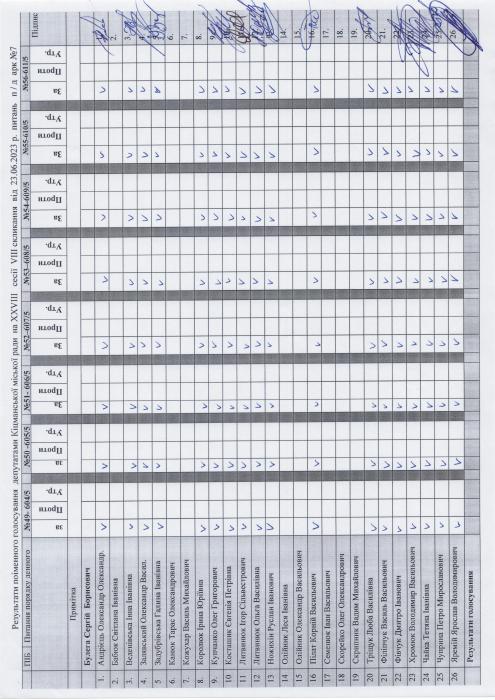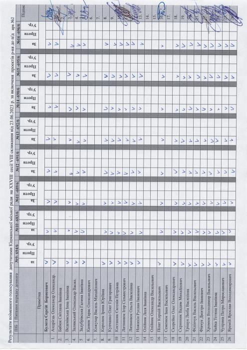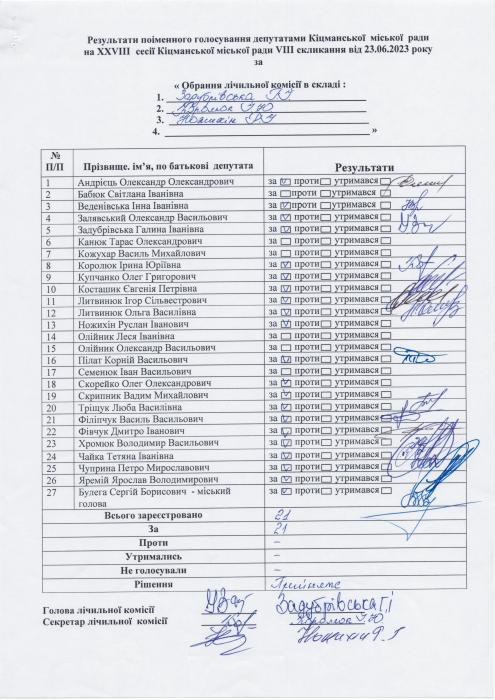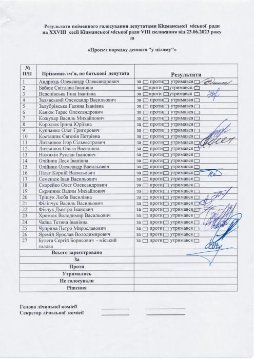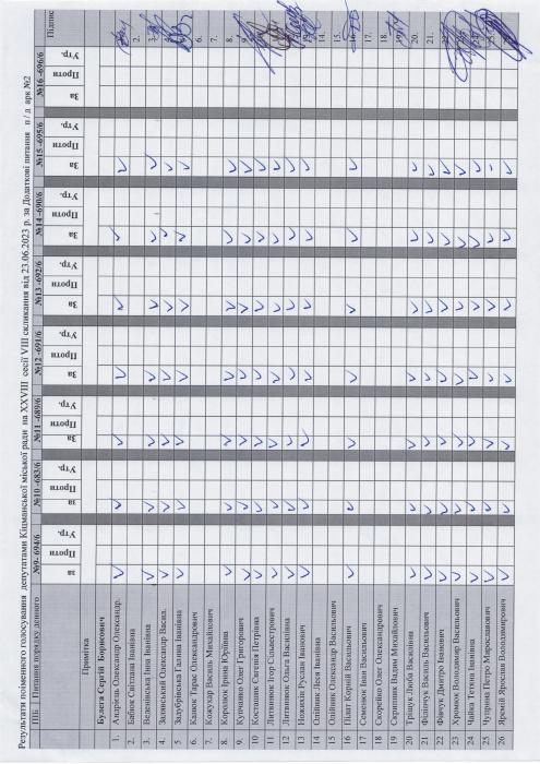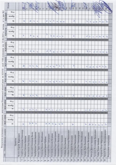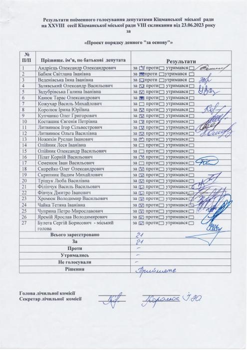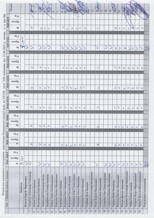 XXVIII ñåñ³ÿ ʳöìàíñüêî¿ ì³ñüêî¿ ðàäè VIII ñêëèêàííÿ â³ä 23.06.2023 ðîêó > Ðåçóëüòàòè ïî³ìåííîãî ãîëîñóâàííÿ íà XXVIII ñåñ³¿ ʳöìàíñüêî¿ ì³ñüêî¿ ðàäè VIII ñêëèêàííÿ â³ä 23.06.2023 ðîêó