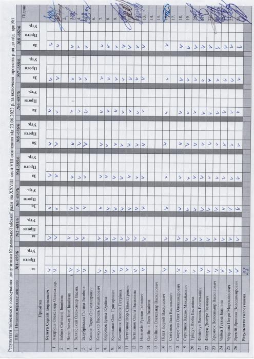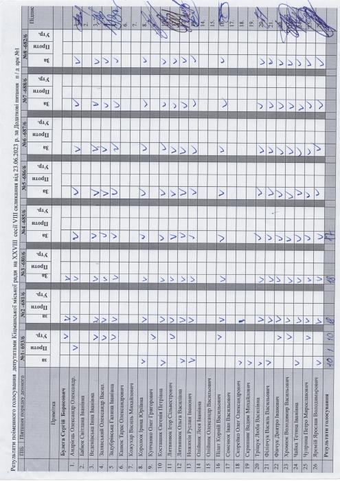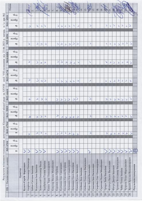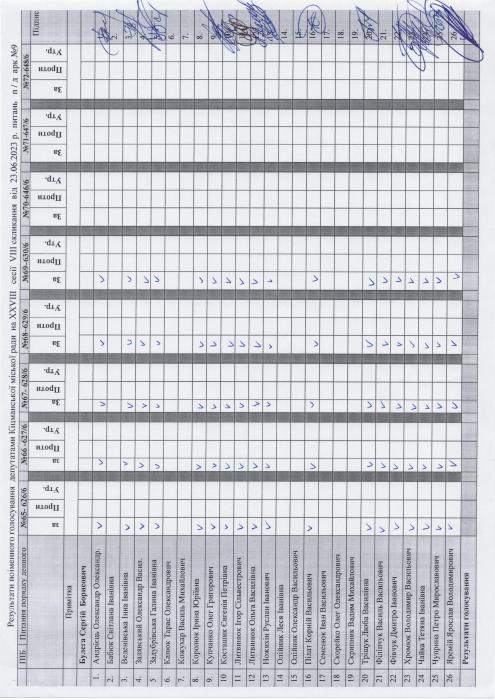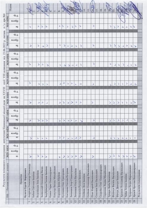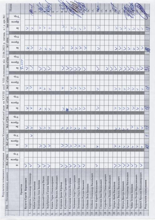 Ðåçóëüòàòè ïî³ìåííîãî ãîëîñóâàííÿ íà XXVIII ñåñ³¿ ʳöìàíñüêî¿ ì³ñüêî¿ ðàäè VIII ñêëèêàííÿ â³ä 23.06.2023 ðîêó