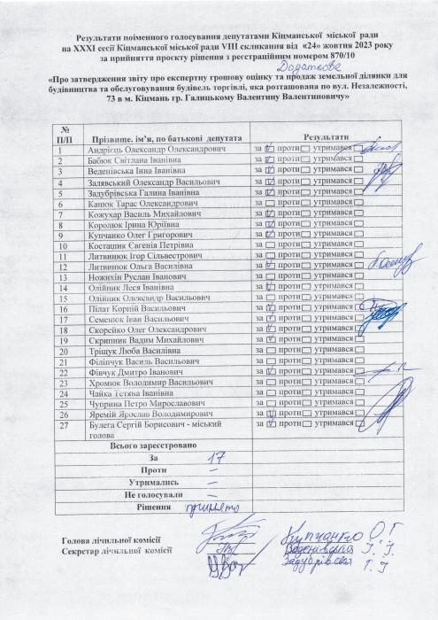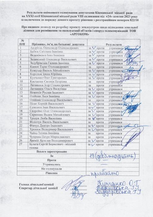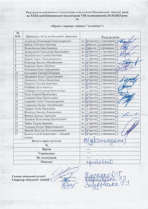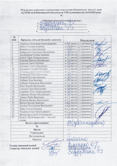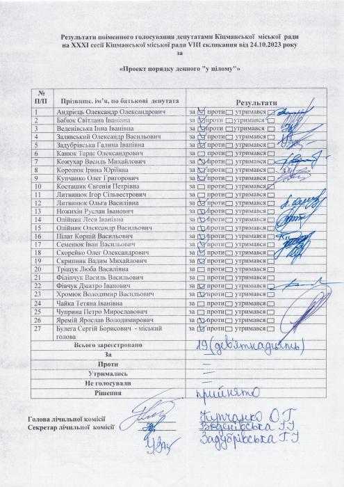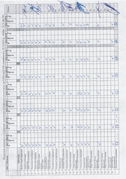 ÕÕÕ² ñåñ³ÿ ʳöìàíñüêî¿ ì³ñüêî¿ ðàäè V²²² ñêëèêàííÿ â³ä 24.10.2023 ðîêó > Ðåçóëüòàòè ïî³ìåííîãî ãîëîñóâàííÿ íà XXX² ñåñ³¿ ʳöìàíñüêî¿ ì³ñüêî¿ ðàäè VIII ñêëèêàííÿ â³ä 24.10.2023 ðîêó