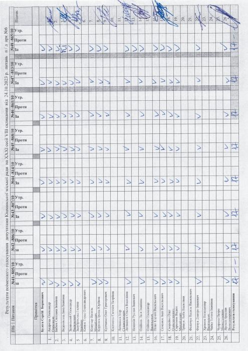 Ðåçóëüòàòè ïî³ìåííîãî ãîëîñóâàííÿ íà XXX² ñåñ³¿ ʳöìàíñüêî¿ ì³ñüêî¿ ðàäè VIII ñêëèêàííÿ â³ä 24.10.2023 ðîêó