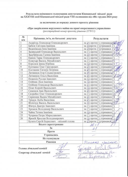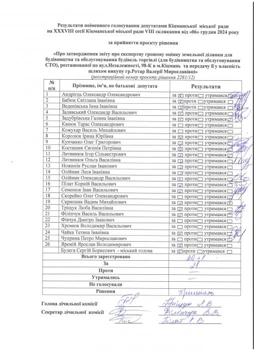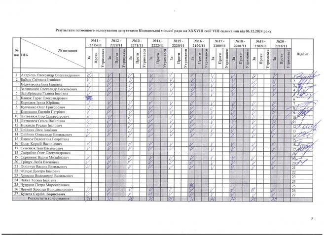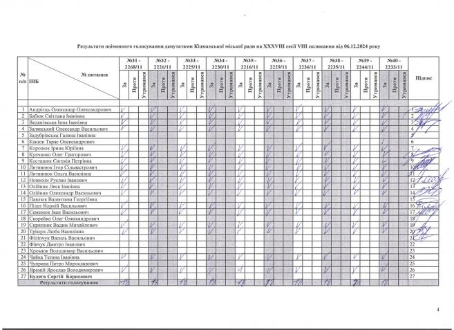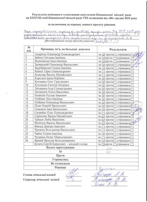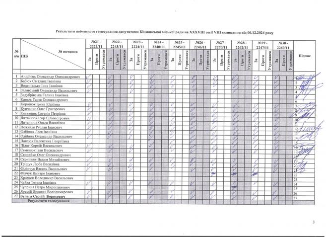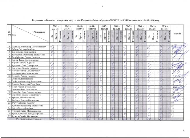 XXXV²²² ñåñ³ÿ ʳöìàíñüêî¿ ì³ñüêî¿ ðàäè V²II ñêëèêàííÿ â³ä 06.12.2024 ðîêó > Ðåçóëüòàòè ïî³ìåííîãî ãîëîñóâàííÿ íà XXXV²²² ñåñ³¿ ʳöìàíñüêî¿ ì³ñüêî¿ ðàäè VIII ñêëèêàííÿ â³ä 06.12.2024 ðîêó