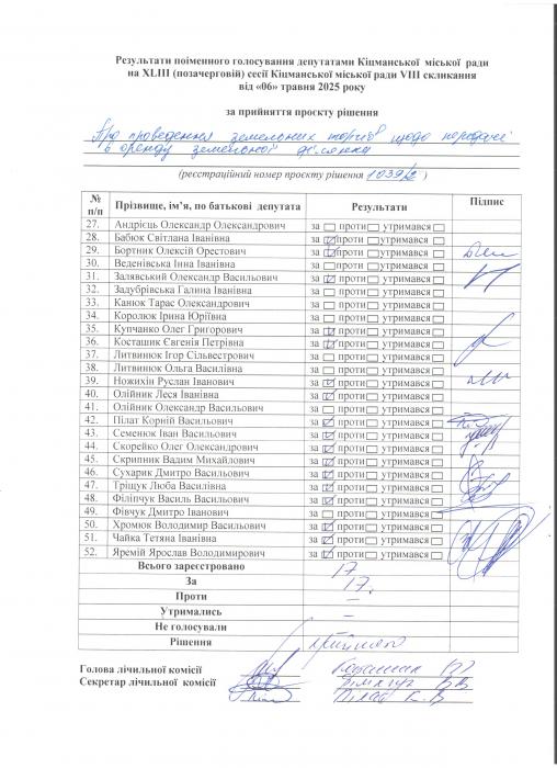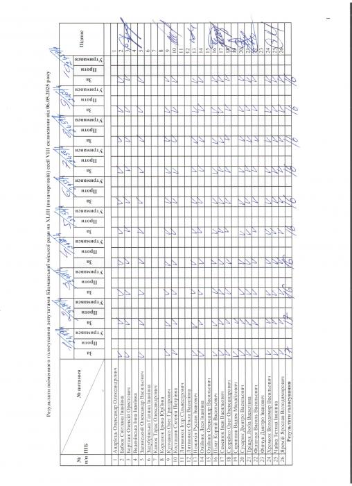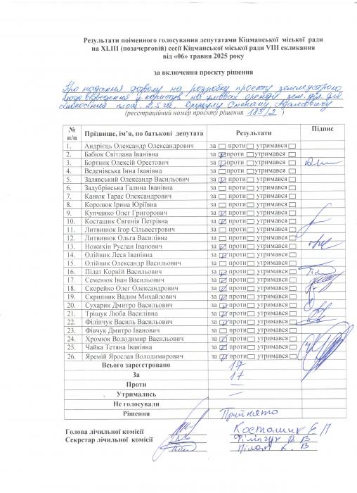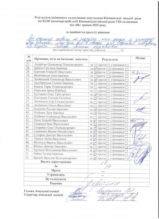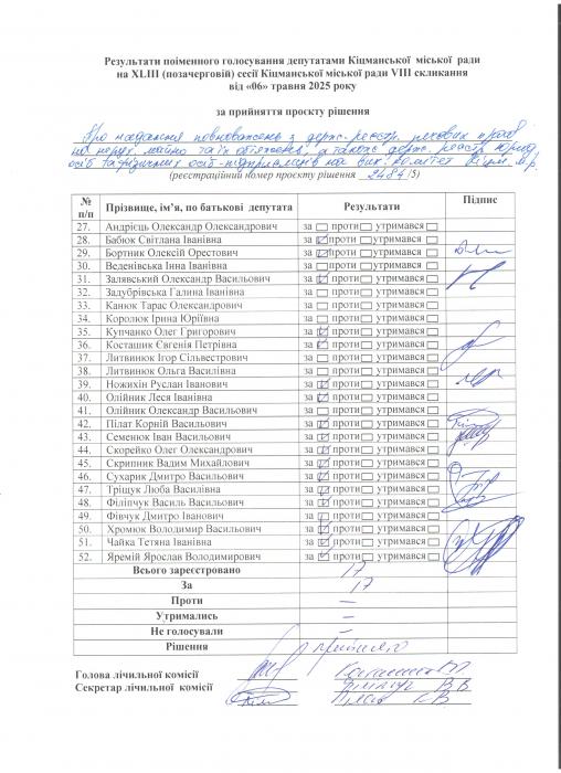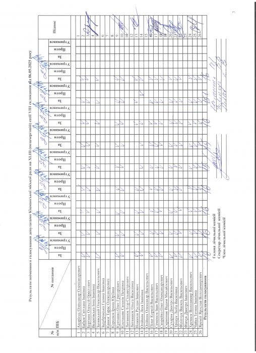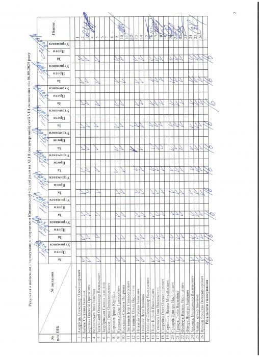 Ðåçóëüòàòè ïî³ìåííîãî ãîëîñóâàííÿ íà XL²II (ïîçà÷åðãîâ³é) ñåñ³¿ ʳöìàíñüêî¿ ì³ñüêî¿ ðàäè VIII ñêëèêàííÿ â³ä 06.05.2025 ðîêó