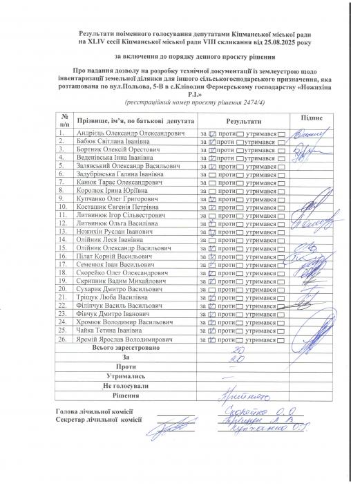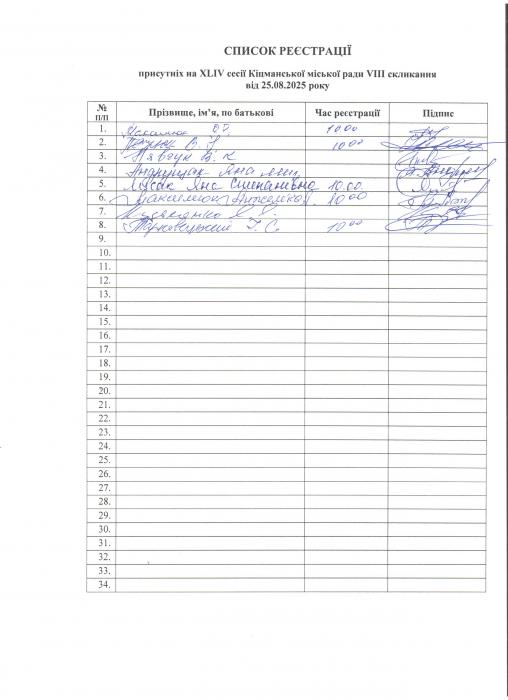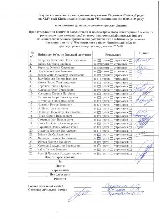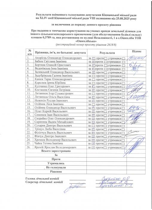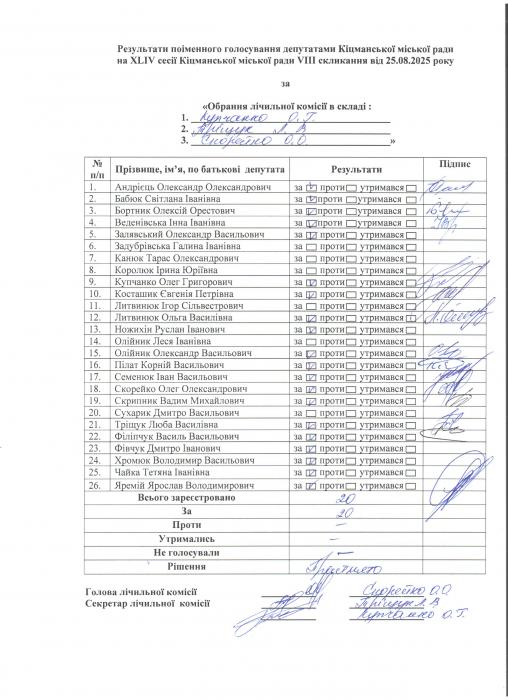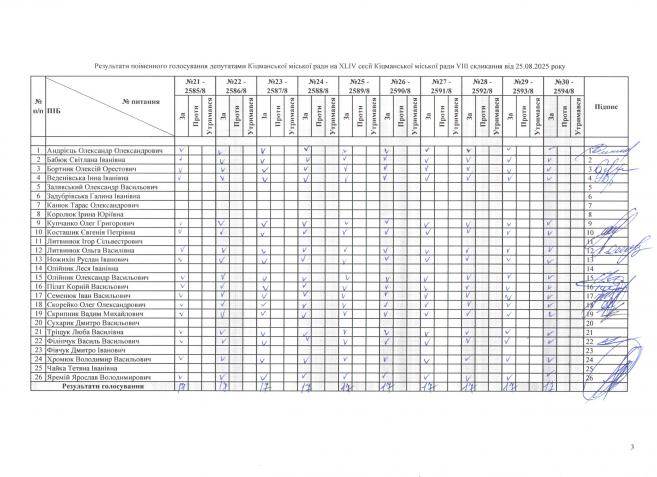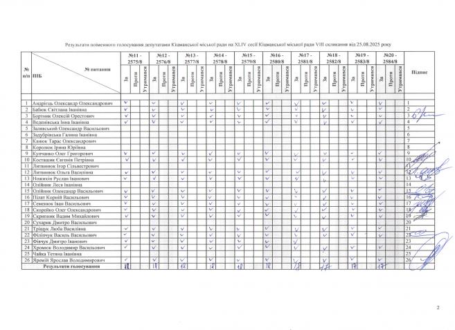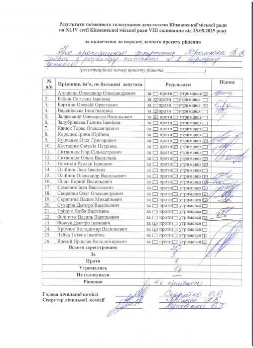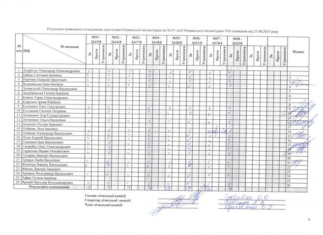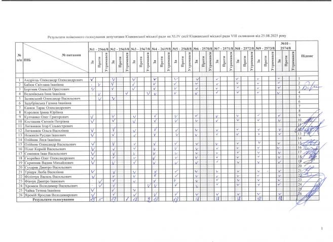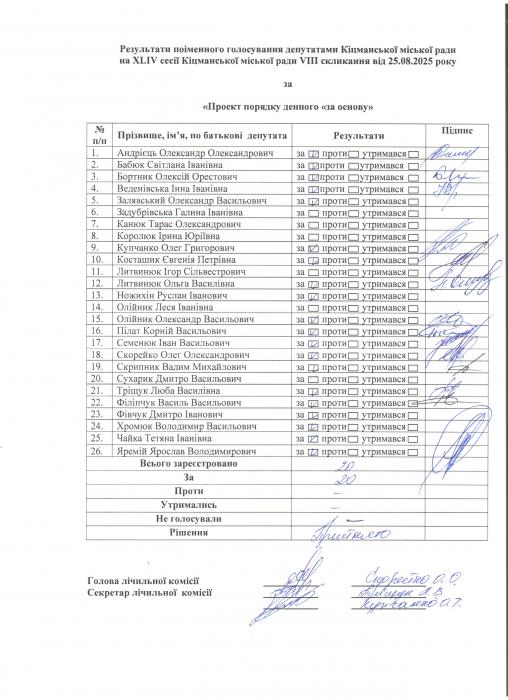 XLIV ñåñ³ÿ ʳöìàíñüêî¿ ì³ñüêî¿ ðàäè VIII ñêëèêàííÿ â³ä 25.08.2025 ðîêó. > Ðåçóëüòàòè ïî³ìåííîãî ãîëîñóâàííÿ íà XL²V ñåñ³¿ ʳöìàíñüêî¿ ì³ñüêî¿ ðàäè VIII ñêëèêàííÿ â³ä 25.08.2025 ðîêó.