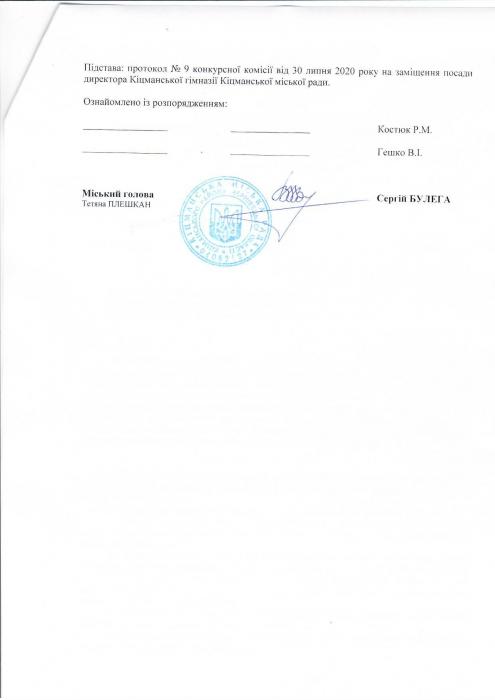 Про затвердження результатів проведеного конкурсу на заміщення посади директора Кіцманської гімназії Кіцманської міської ради