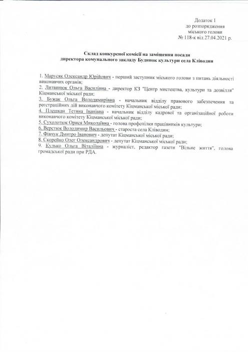 Про проведення конкурсу на заміщення вакантної посади директора комунального закладу Будинок культури села Кліводин