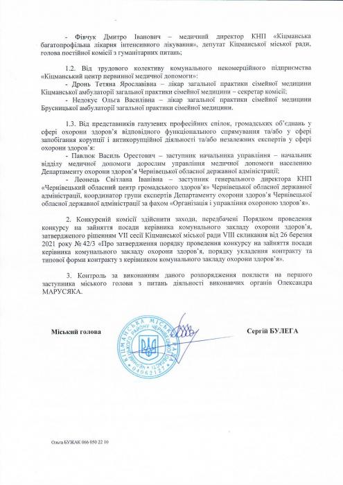 Про затвердження персонального складу конкурсної комісії з проведення конкурсу на зайняття посади генерального директора комунального некомерційного підприємства "Кіцманський центр первинної медичної допомоги"