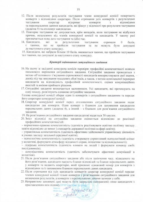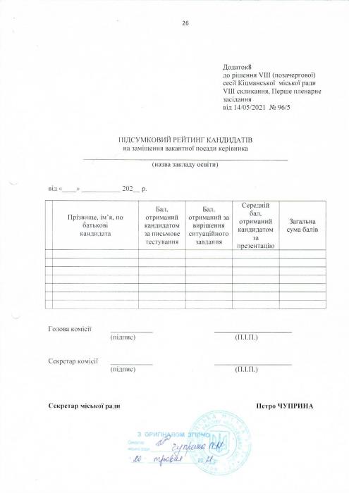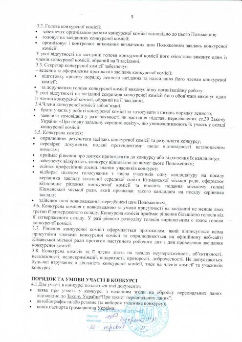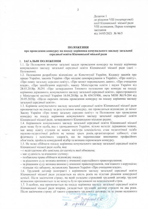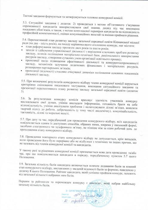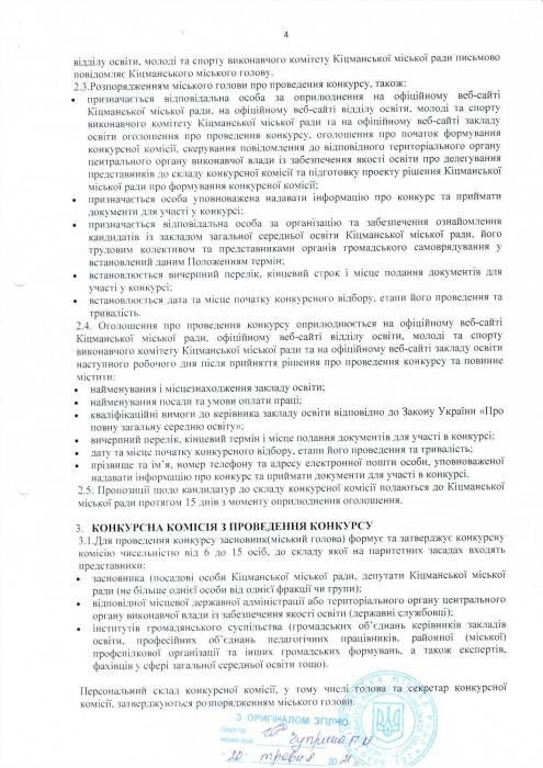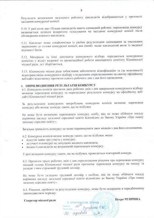 Про затвердження Положення про проведення конкурсу на посаду керівника комунального закладу загальної середньої освіти Кіцманської міської ради