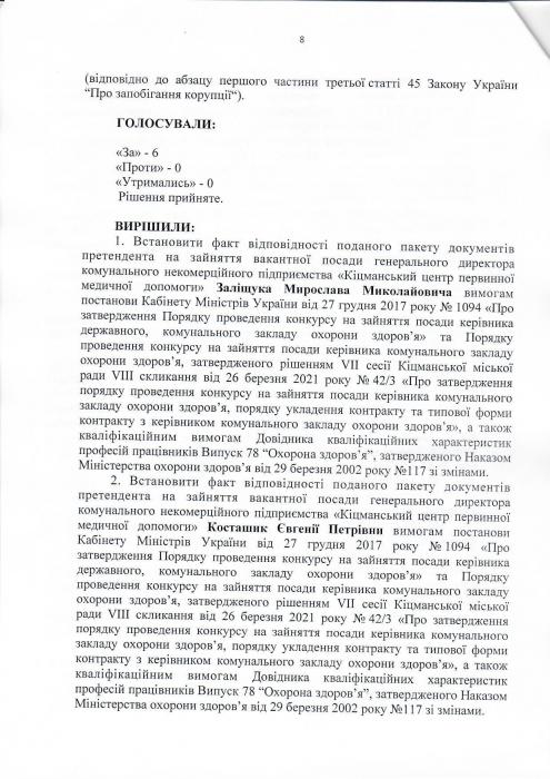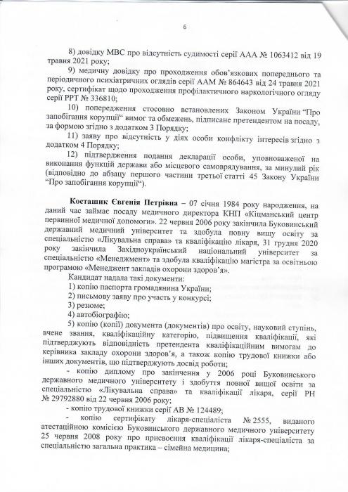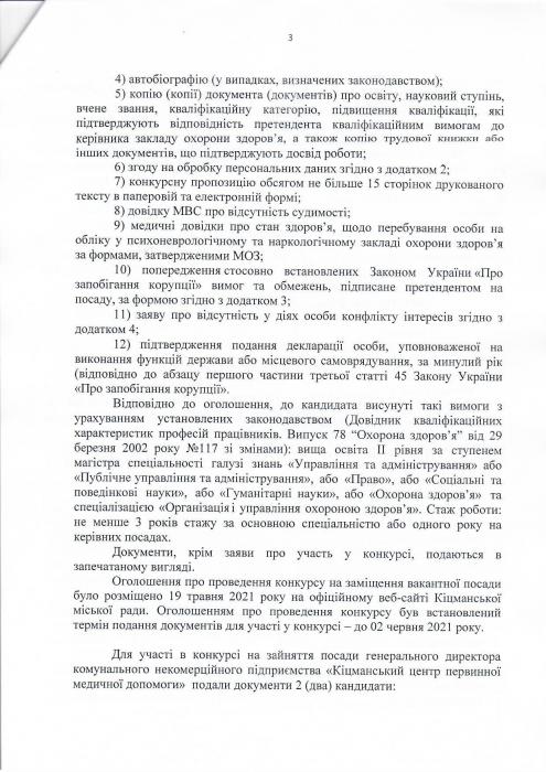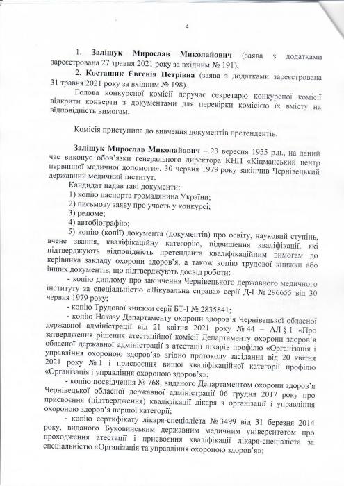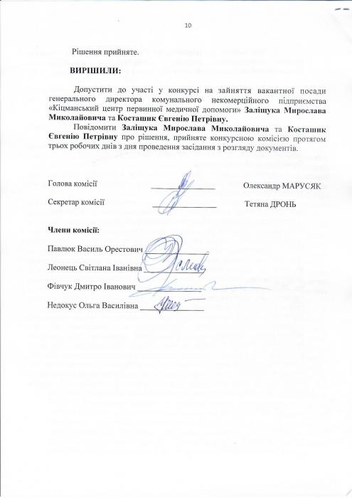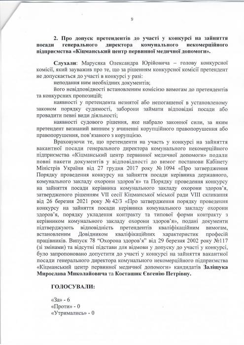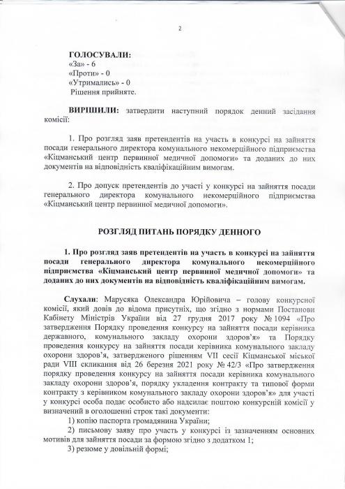 Протокол №2 засідання конкурсної комісії з проведення конкурсу на зайняття посади генерального директора комунального некомерційного підприємства "Кіцманський центр первинної медичної допомоги"