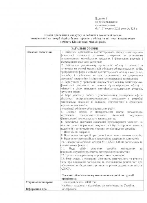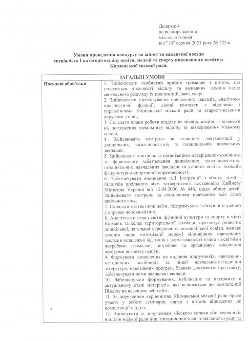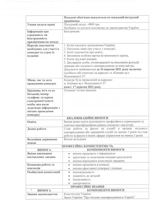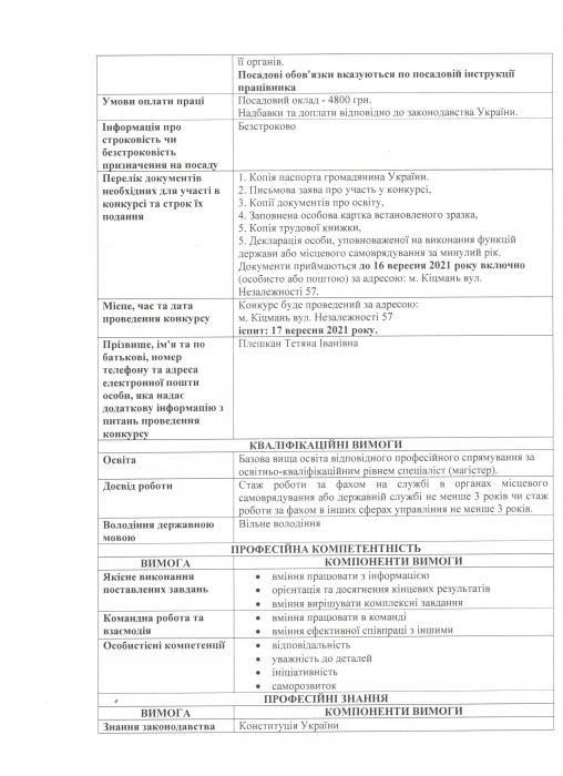 Про проведення конкурсу на заміщення вакантних посад виконавчого комітету Кіцманської міської ради