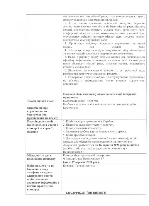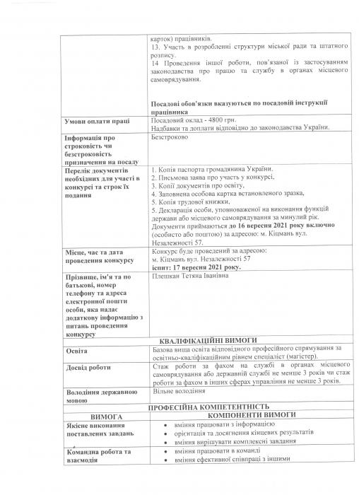 ʳöìàíñüêà ì³ñüêà ðàäà îãîëîøóº êîíêóðñ íà çàì³ùåííÿ âàêàíòíèõ ïîñàä âèêîíàâ÷îãî êîì³òåòó