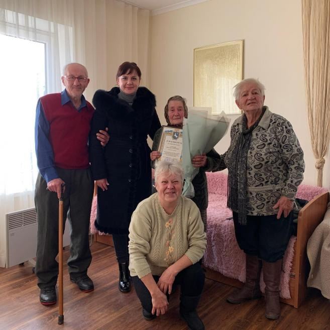 «Дуже приємно сьогодні вітати Вас із такою чудовою датою, — звернулася до ювілярки Ярослава Петрівна. — Ми вклоняємося Вашій життєвій мудрості, багатому досвіду, душевній доброті та щирості. У день Вашого славного ювілею прийміть сердечні побажання міцного здоров’я, миру, добробуту, душевного спокою, поваги і турботи від рідних. Нехай Господь дарує Вам ще багато років життя у доброму здоров‘ї.»