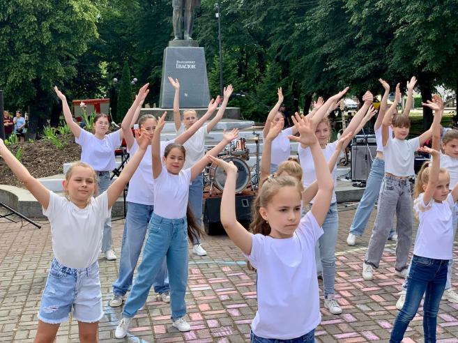 ϳñëÿ çàâåðøåííÿ óðî÷èñòî¿ ÷àñòèíè ñâÿòà ñâÿòêîâ³ çàõîäè äëÿ ä³òåé ïðîäîâæèëèñÿ êîíêóðñîì äèòÿ÷îãî ìàëþíêó íà àñôàëüò³ «Ñâ³ò áåç â³éíè», à íà ñöåí³ ðîçïî÷àâñÿ áëàãîä³éíèé êîíöåðò íàðîäíîãî àìàòîðñüêîãî âîêàëüíî-³íñòðóìåíòàëüíîãî ãóðòó «Ôîðøëàã» ñï³ëüíî ³ç ó÷íÿìè òà âèêëàäà÷àìè â³ää³ëó «ñîëüíîãî ñï³âó» ʳöìàíñüêî¿ ìóçè÷íî¿ øêîëè ³ì.Â.²âàñþêà.