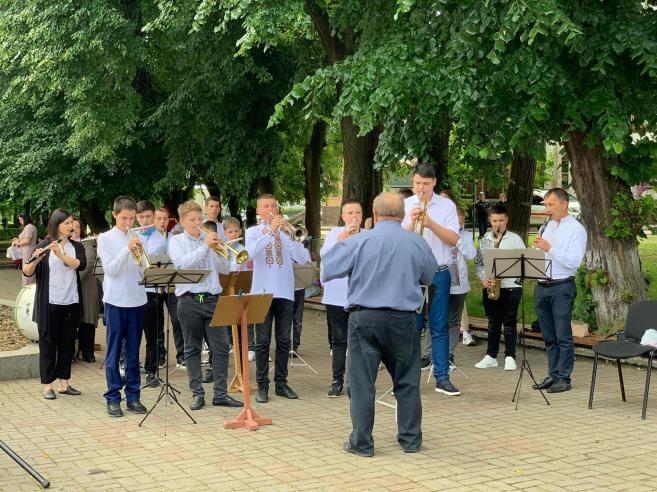 Õóäîæí³ìè íîìåðàìè ïðèñóòí³õ ïîðàäóâàëè äèòÿ÷èé õîð ʳöìàíñüêî¿ ìóçè÷íî¿ øêîëè ³ì.Â.²âàñþêà òà ãóðò «Ôîðøëàã», çàïàëüíèé òàíåöü ó âèêîíàíí³ òàíöþâàëüíîãî êîëåêòèâó «Ñòåï-Àï», çâó÷àëè ìóçè÷í³ â³òàííÿ ó âèêîíàíí³ äóõîâîãî îðêåñòðó ʳöìàíñüêî¿ ìóçè÷íî¿ øêîëè ³ì.Â.²âàñþêà.