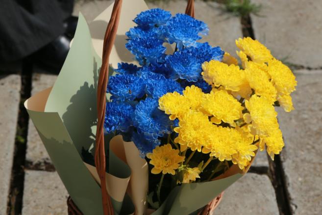 Ïðèñóòí³ ïîêëàëè êâ³òè òà ëàìïàäêè, íèçüêî ñõèëèëè ãîëîâè ïåðåä ïîäâèãîì ñëàâíîãî ñèíà Óêðà¿íè, âøàíóâàâøè ïàì’ÿòü ïðî íüîãî.