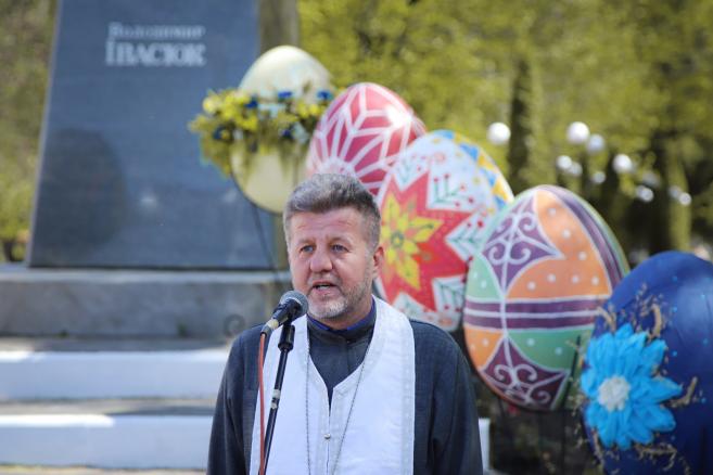 Ç â³òàëüíèìè ïðîìîâàìè äî ïðèñóòí³õ çâåðíóëèñÿ ñüîãîäí³ â.î. ì³ñüêîãî ãîëîâè ʳöìàíñüêî¿ ì³ñüêî¿ òåðèòîð³àëüíî¿ ãðîìàäè ²âàí Ñåìåíþê, çàñòóïíèê ãîëîâè ʳöìàíñüêî¿ ì³ñüêî¿ ðàäè Îëåêñàíäð Ìàðóñÿê, ì³ñüêèé ãîëîâà Òðîñòÿíåöüêî¿ ì³ñüêî¿ òåðèòîð³àëüíî¿ ãðîìàäè Þð³é Áîâà, òàêîæ ñëîâî ìàâ ïðîòðåé ïðàâîñëàâíî¿ öåðêâè Óêðà¿íè, íàñòîÿòåëü Ñâÿòî-Ìèêîëà¿âñüêî¿ öåðêâè ì.ʳöìàíü - îòåöü Þð³é. Ïðîëóíàëè â³òàííÿ ç³ ñâ³òëèì ñâÿòîì Õðèñòîâîãî âîñêðåñ³ííÿ, ïîáàæàííÿ ìèðó, çäîðîâ'ÿ, äîáðîáóòó â êîæíîìó äîì³, ïîäÿêà íàøèì Ãåðîÿì, ùî ñòîÿòü íà ïåðåäîâ³é òà íàøèì ãîñòÿì, ùî ðîçä³ëÿþòü öåé äåíü ç íàìè.