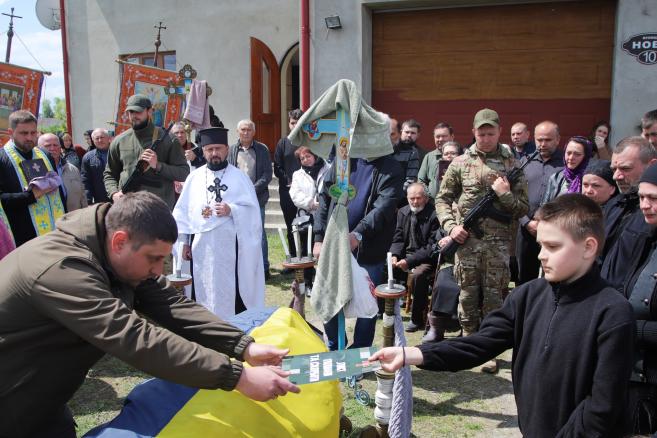Жителі Кіцманської та Мамаївської громади, рідні та друзі, керівництво громад, духовенство, військовослужбовці, побратими, волонтери зібралися на спільну панахиду на родинному подвір’ї Богдана , щоб віддати останню шану Захиснику. На колінах, вони провели труну Героя в його останню путь — до села Дубівці Мамаївської громади, де він народився, виріс і де відбулося поховання.😔