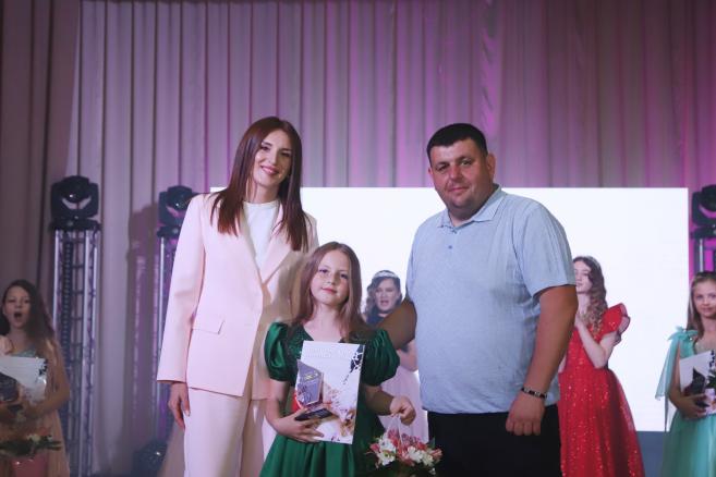 🌸 Зі сцени до своїх вихованок також звернулася Ольга Литвинюк — засновниця та керівниця школи. Вона подякувала батькам, команді та всім, хто підтримував школу протягом року, а також спільно із Олександром Юрійовичем вручила подяки та подарунки кожній випускниці.