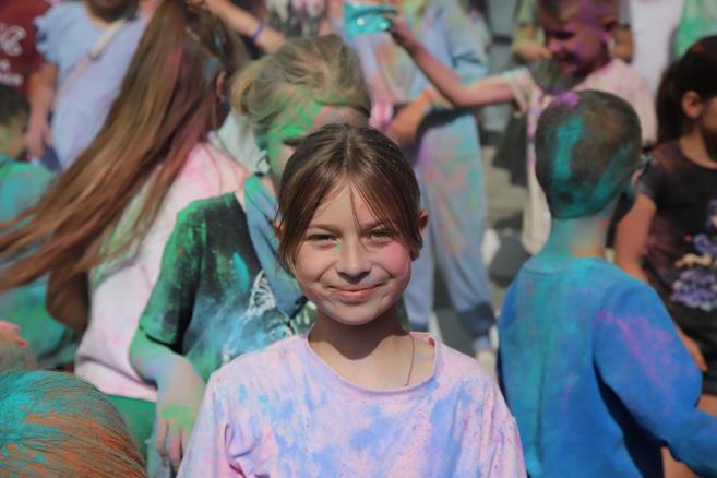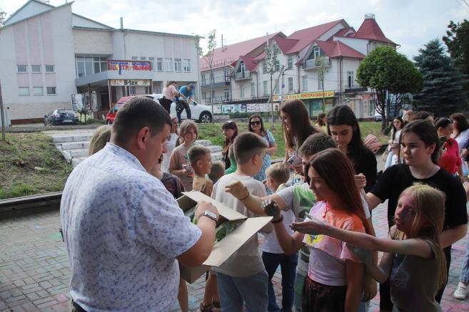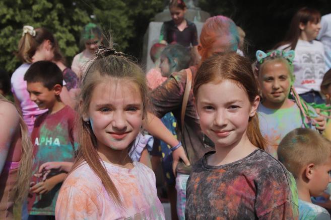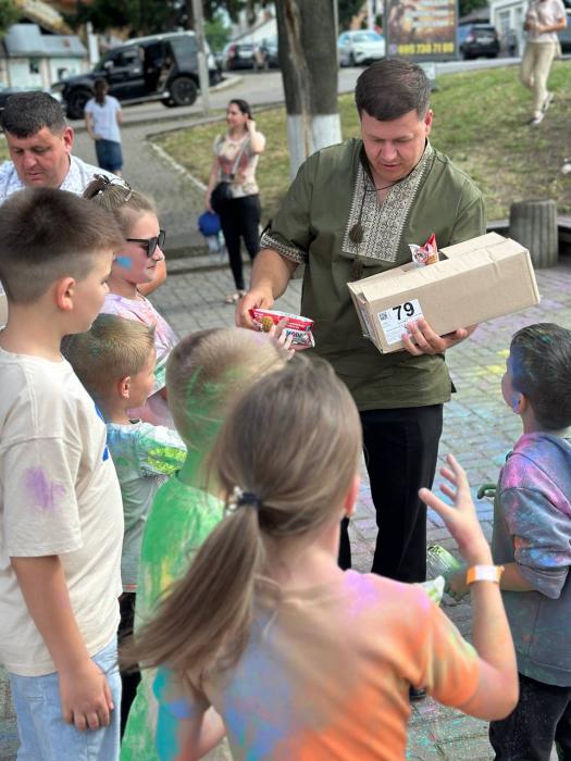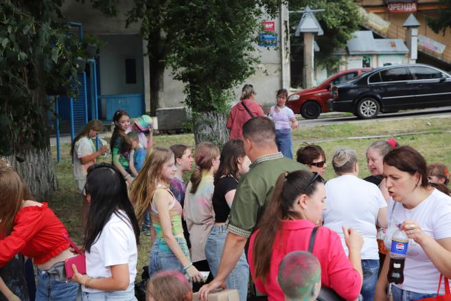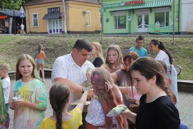 🌈 А далі — справжній батл фарб, що перетворив площу на яскраву палітру емоцій! Барви літа, сміх і щасливі обличчя дітей — це те, заради чого варто творити подібні події.