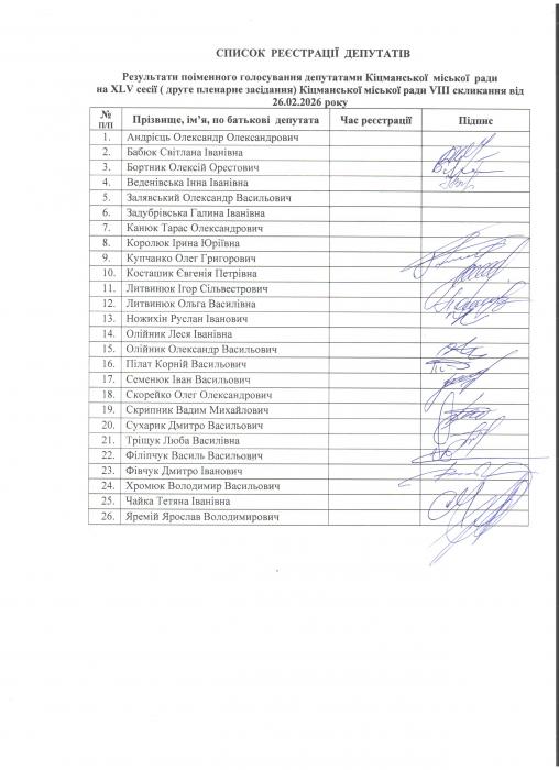 XLV сесія( 2 пленарне засідання) Кіцманської міської ради VIII скликання від 26.02.2026 року.